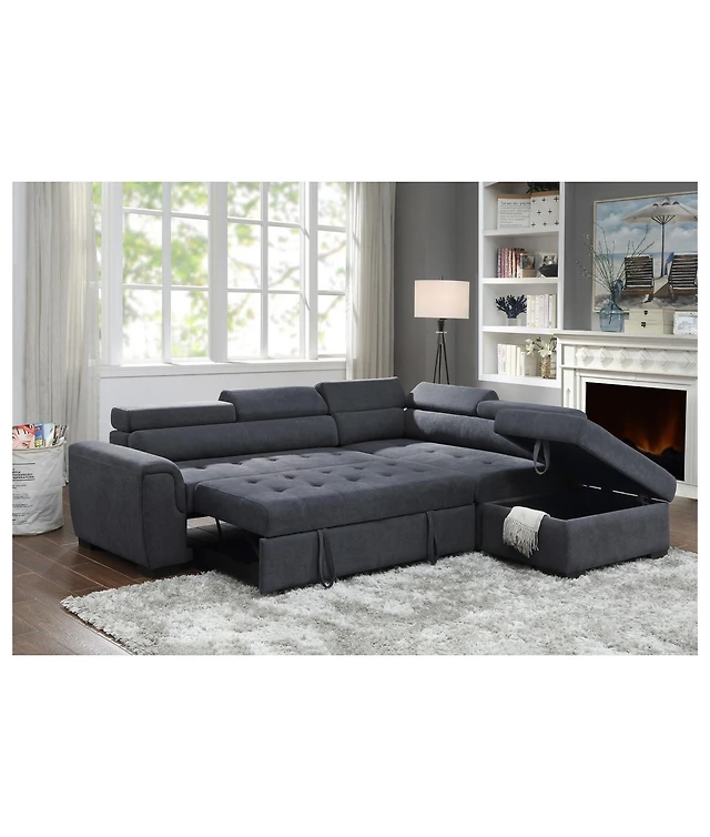 Os Home and Office Furniture Tufted Sectional Chaise Sofa Sleeper with Storage in Dark Grey