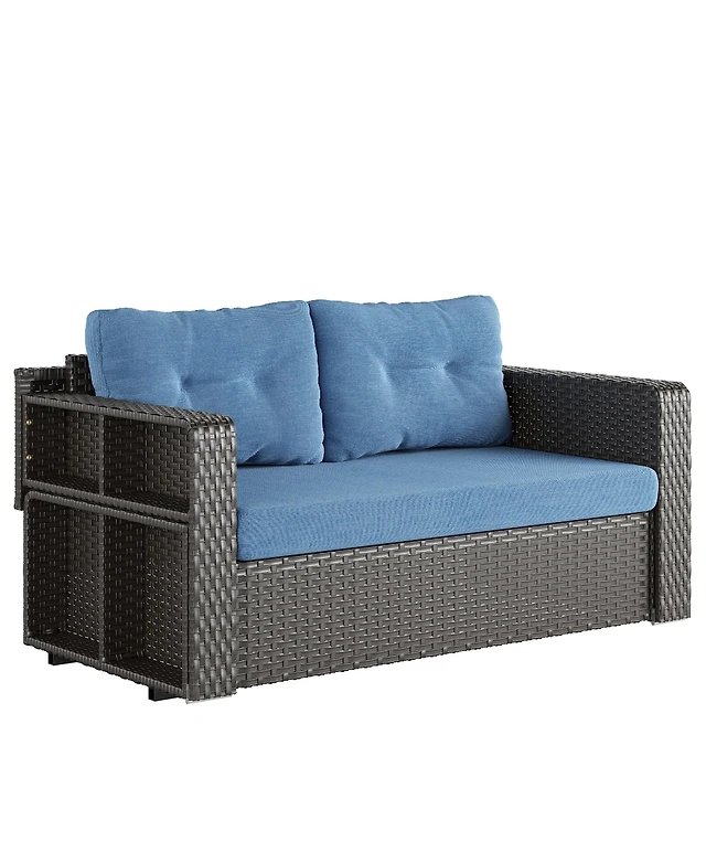 WestinTrends Outdoor Patio Hdpe Navy Blue Loveseat Sofa with Cushions