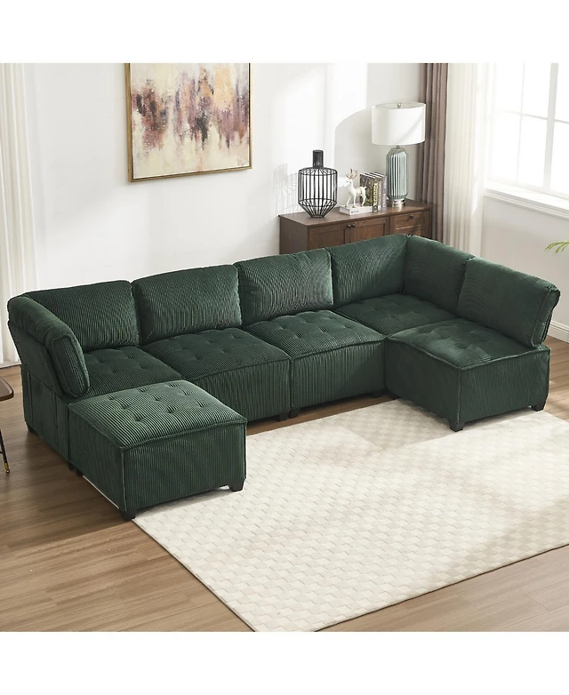 Streamdale Cozy 84" Corduroy Sofa with Storage, Ottomans, and Pillows