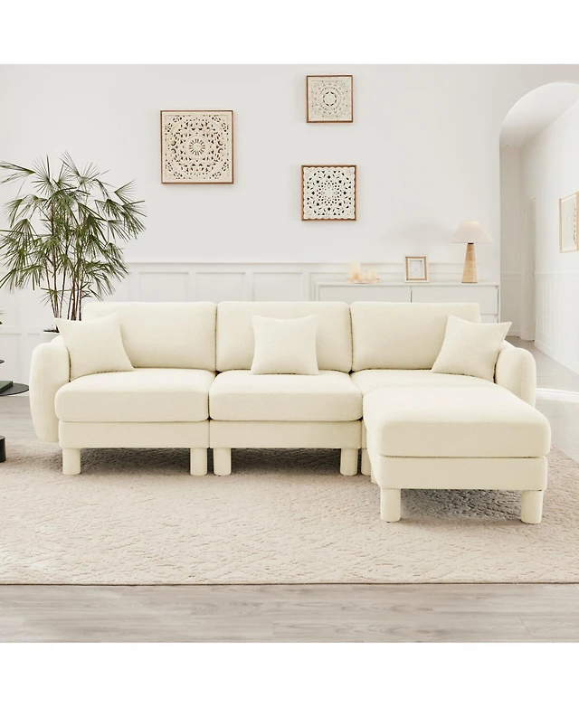 Streamdale Furniture Modern Chenille Sectional Sofa with Ottomans & Pillows - Beige