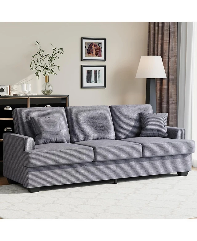 Rainsken Contemporary 3-Seat Sofa, 83.86" Soft Snowfleece Lounge Couch, Practical Upholstered Sofa with 2 Cup Holders for Living Room and Office