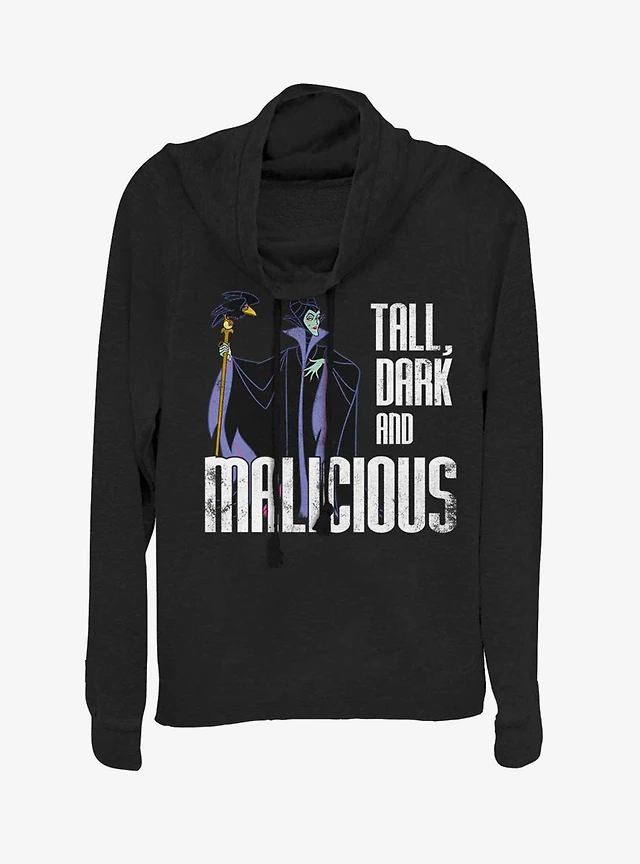 Disney Sleeping Beauty Maleficent Tall Dark And Malicious Cowlneck Long-Sleeve Womens Top