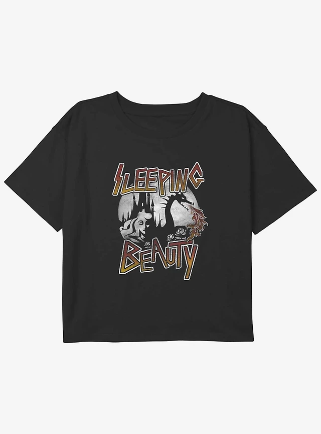 Disney Sleeping Beauty Sleep Youth Girls Boxy Crop T-Shirt