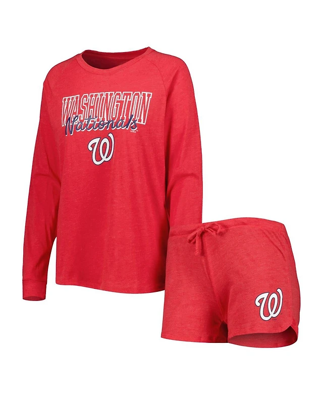 Concepts Sport Women's 2-Pack Heather Red Washington Nationals Meter Knit Raglan Long Sleeve Top Shorts and Sleep Set