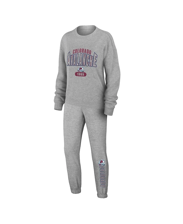 Wear by Erin Andrews Women's Heather Gray Colorado Avalanche Knit Long Sleeve Tri-Blend T-Shirt, Pants and Sleep Set