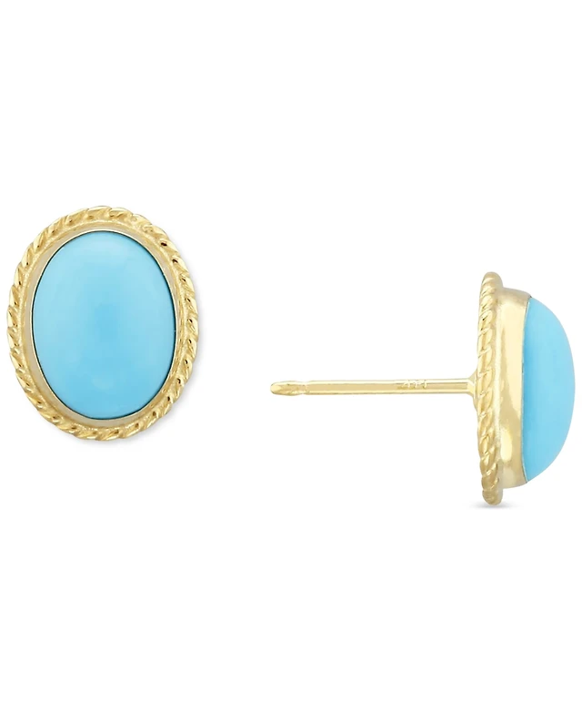 Genuine Sleeping Beauty Turquoise Stud Earrings in 14k Yellow Gold