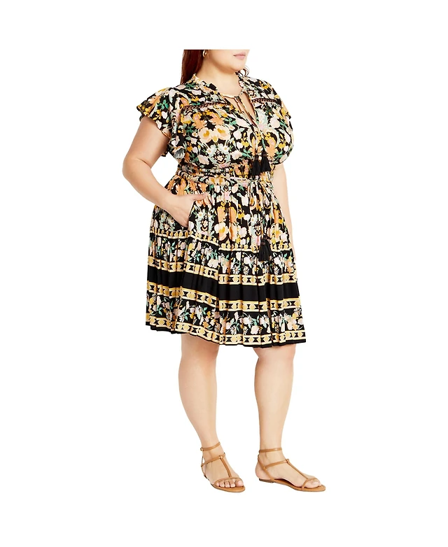 24seven Comfort Apparel Plus Abstract Cap Sleeve Ruched Front Dress