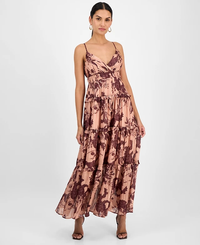julia jordan Women's Tie-Strap Ruffle-Tier Maxi Dress