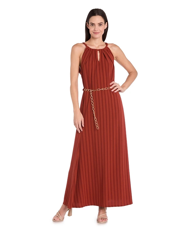 Betsy & Adam Women's Solid-Color Studded Long Halter Dress