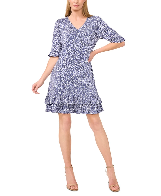 Lucky Brand Women's Cotton Market Day Floral Tiered Dress