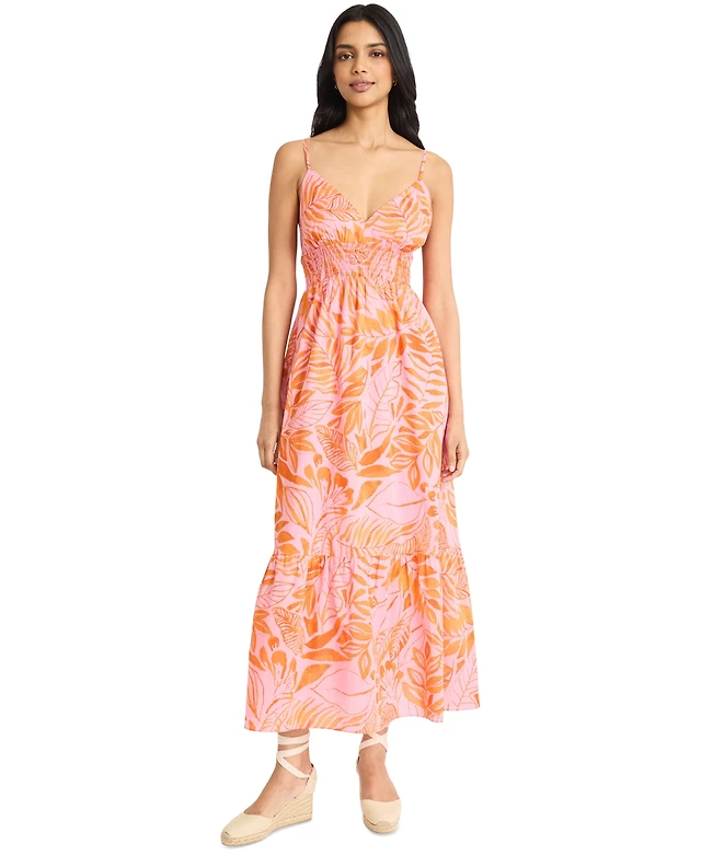 Taylor Women's Printed V-Neck Smocked-Waist Sleeveless Dress
