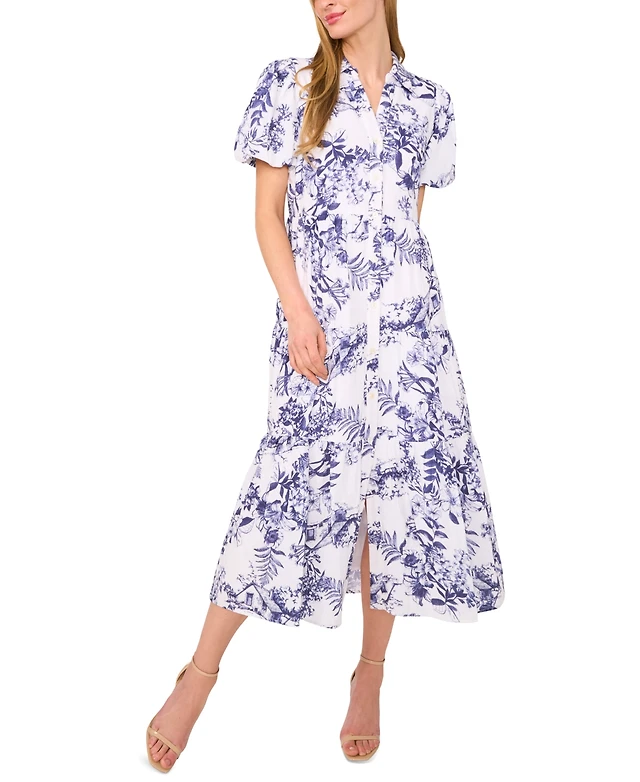 Vince Camuto Women's Printed Puff-Sleeve Maxi Dress