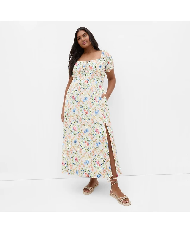 Jones New York Women's Printed Shirred Flutter-Sleeve Midi Dress
