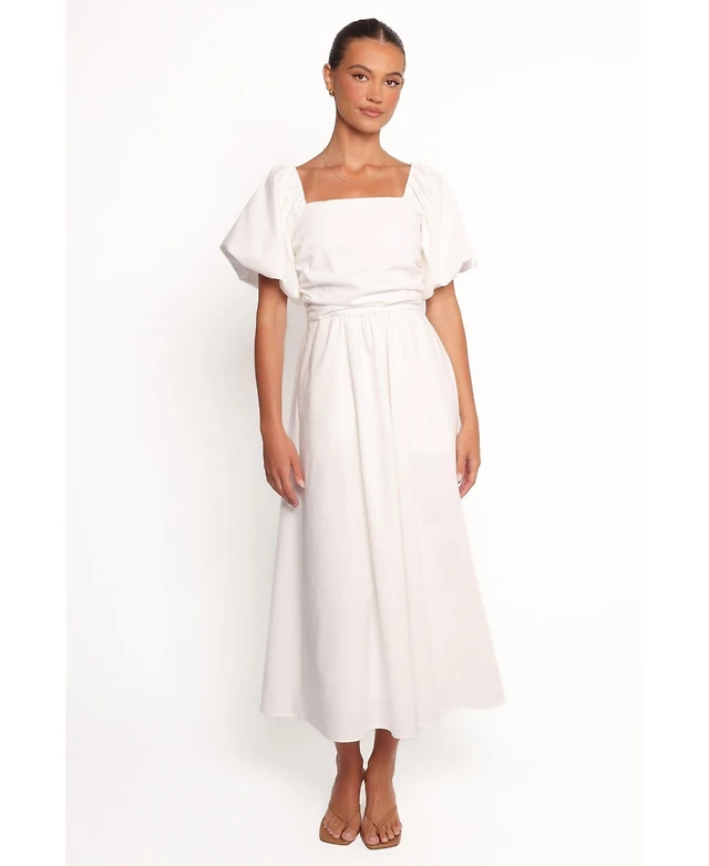 Lands' End Women's Soft Denim Puff Sleeve Midi Dress