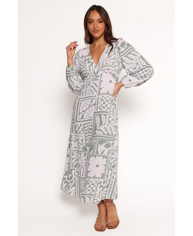 Avec Les Filles Women's Long Sleeves Printed Maxi Dress