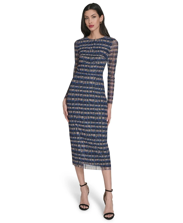 Eliza J Women's Long-Sleeve Printed-Mesh Midi Dress