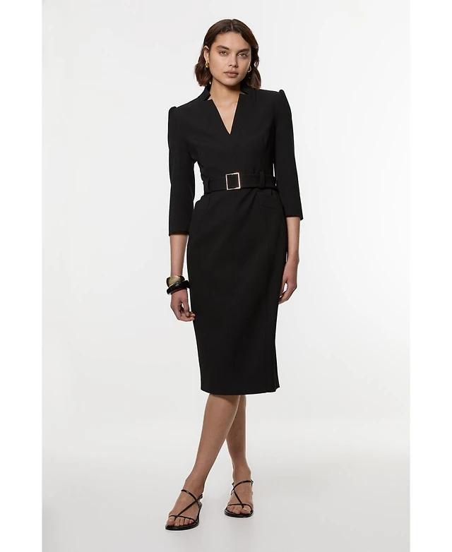 Karen Millen Women's 3/4 Sleeve Belted Midi Dress