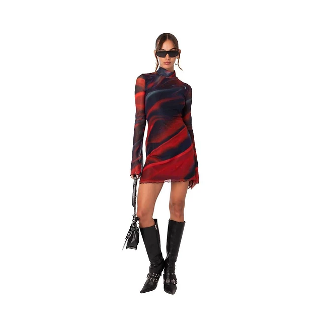 Bebe Women's Long Sleeve Floral Mesh Dress