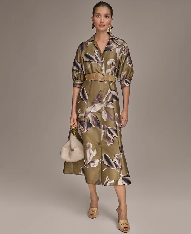 CeCe Women's Split-Neck Balloon-Sleeve Tiered A-line Dress