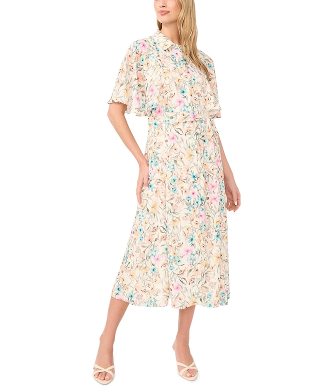 Exquise Pleated Short-Sleeve Twofer Midi Dress