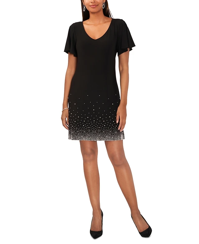 Jessica Howard Women's Short-Flared-Sleeve Sheer-Detail Sheath Dress