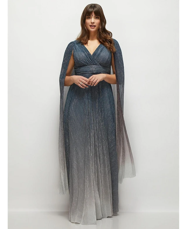 T Tahari Women's Tiered V-Neck Flutter-Sleeve Midi Dress