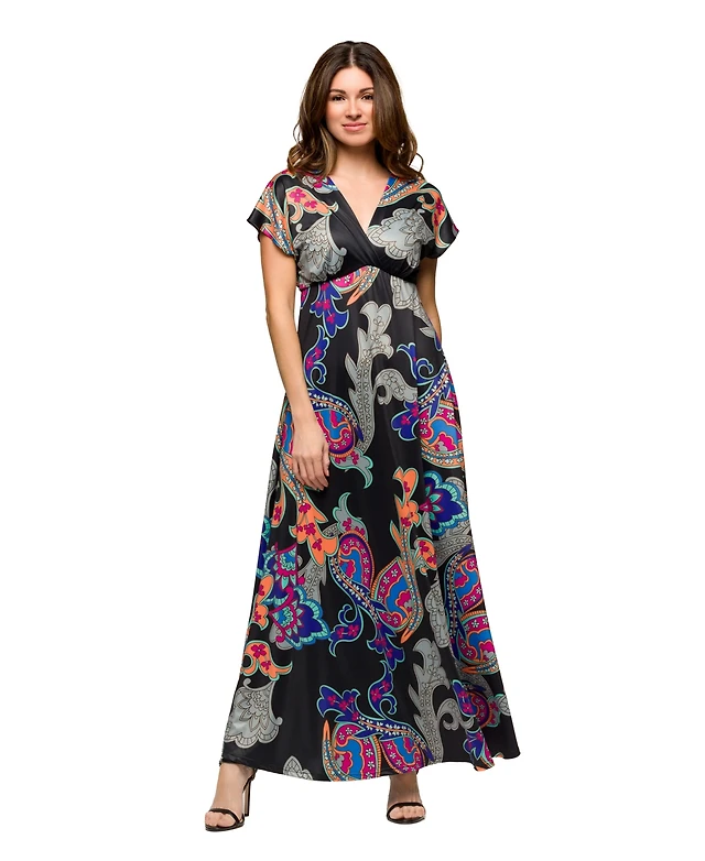 24seven Comfort Apparel Women's Green Paisley Print Long Sleeve Wrap Maxi Dress