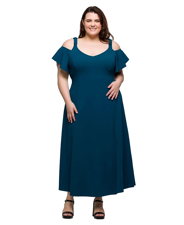 June + Vie Women's Plus Ruffled Chiffon Cape Maxi Dress