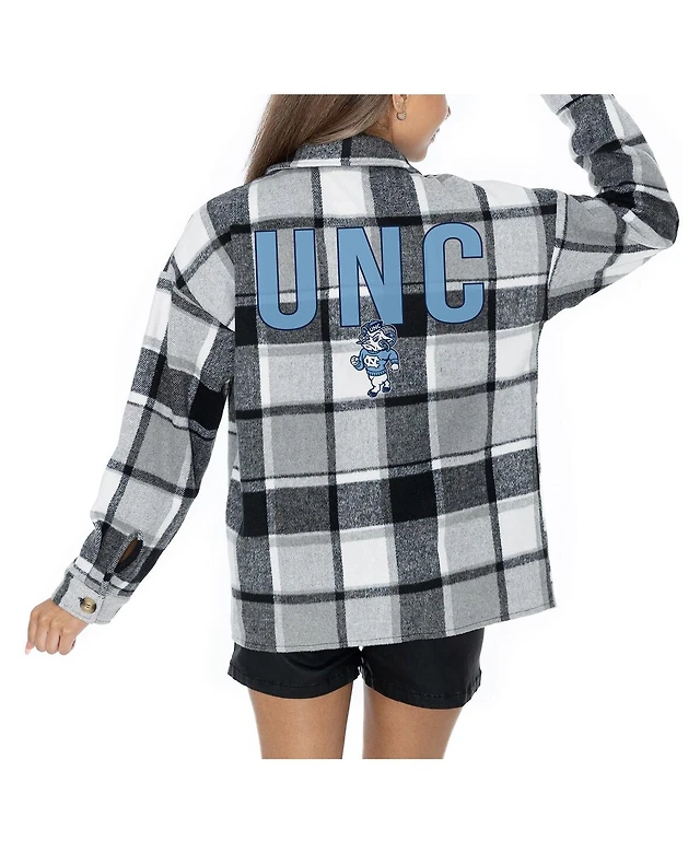 Gameday Couture Women's Grey North Carolina Tar Heels Long Sleeve Brushed Plaid Button-Up Overshirt Jacket