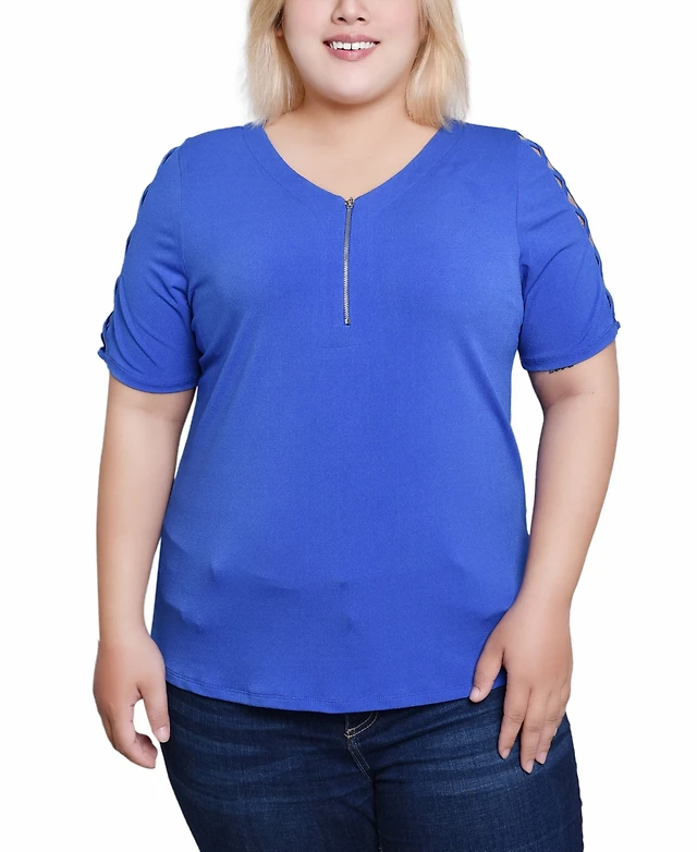 City Chic Plus Fashion Fling Elbow Sleeve Zip Neck Top