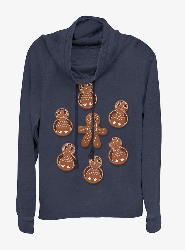 Star Wars Episode VIII The Last Jedi Porg Chewie Holiday Cookies Cowlneck Long-Sleeve Womens Top