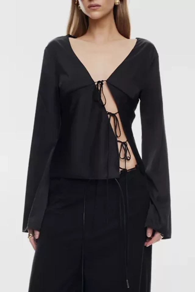 Vince Camuto Women's Bubble Sleeve V-Neck Wrap Tie Top