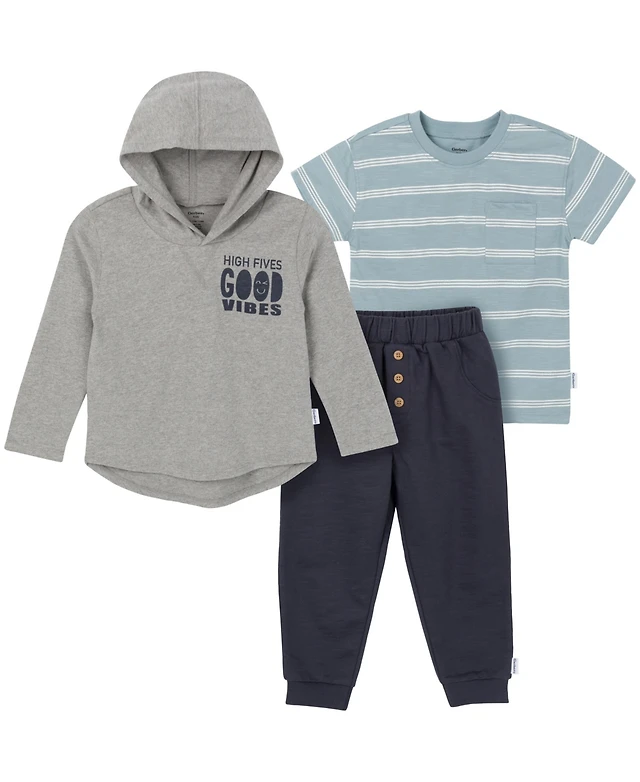 Gerber Toddler Boys Top, Hooded Long Sleeve and Joggers, 3-Piece Set