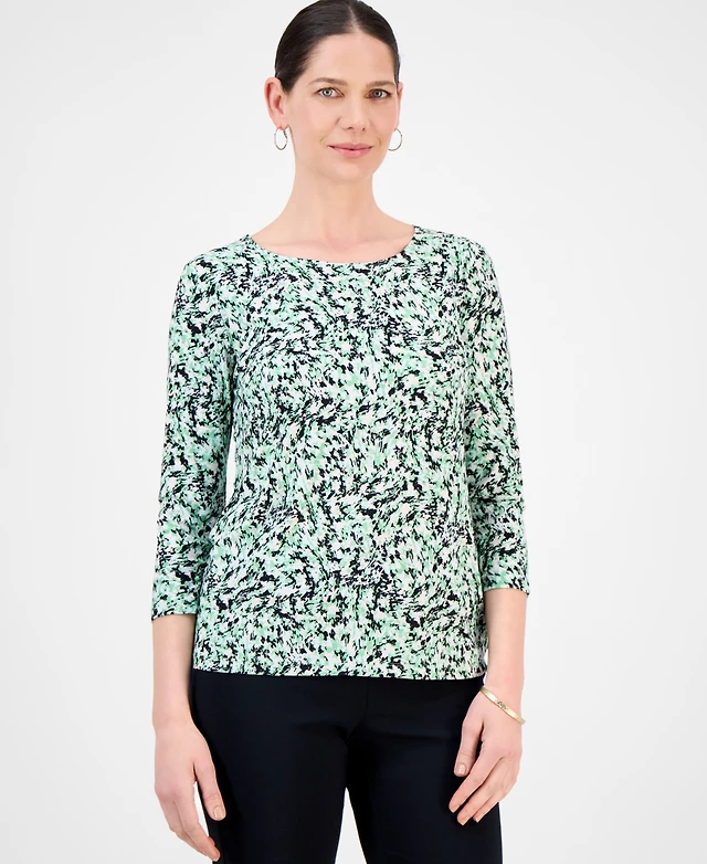 Calvin Klein Women's Elbow-Length Button-Sleeve Top