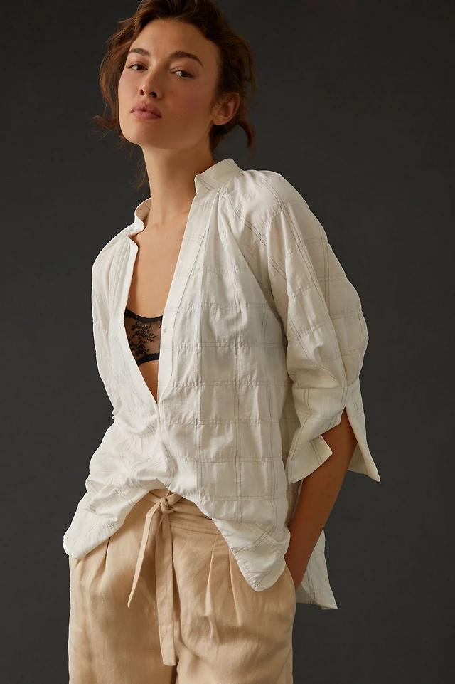 Ann Taylor Embellished Relaxed Perfect Shirt White Women's