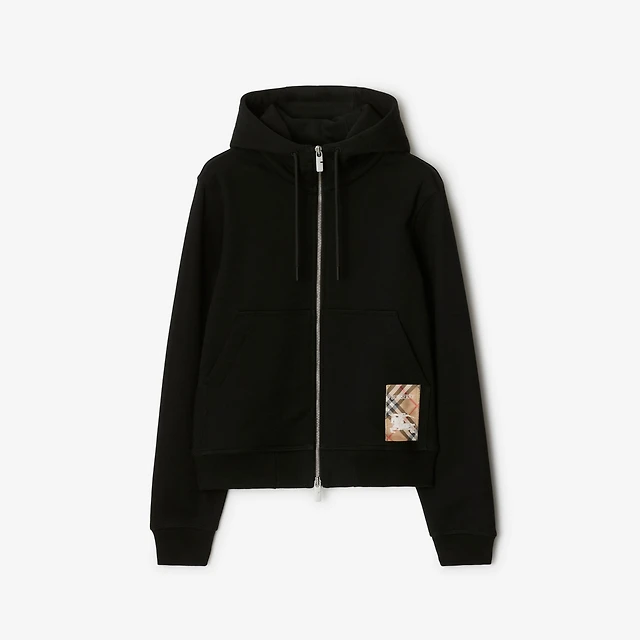 Check Label Cotton Zip Hoodie in Black - Women | Burberry® Official