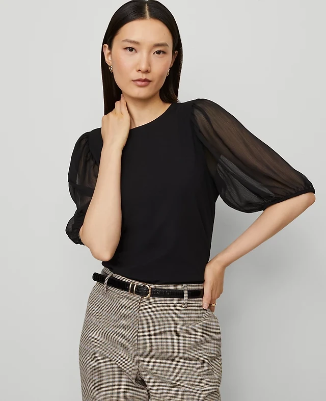 Ny Collection Petite Pintuck Roll Tab Sleeve Top