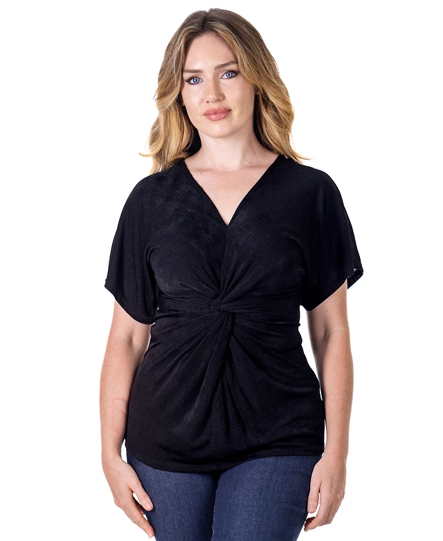Hearts Of Palm Plus Solid Short-Sleeve Top with Keyhole Neckline