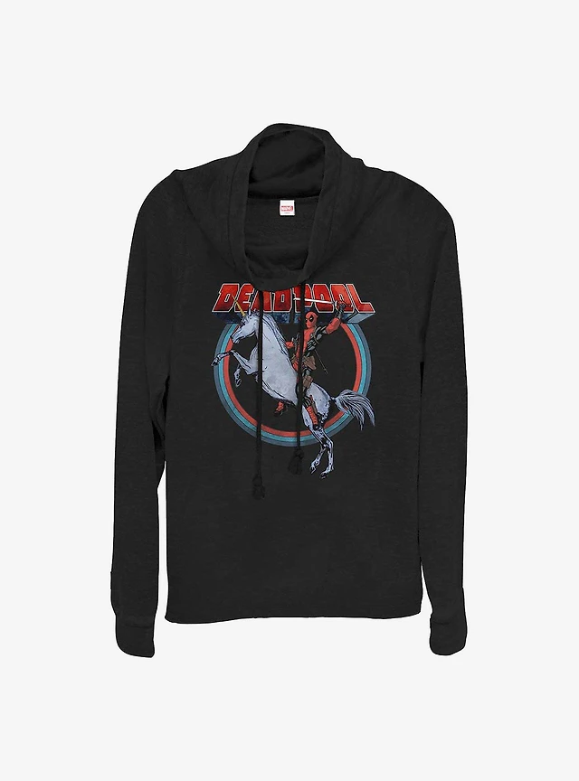 Marvel Deadpool On Unicorn Cowlneck Long-Sleeve Girls Top