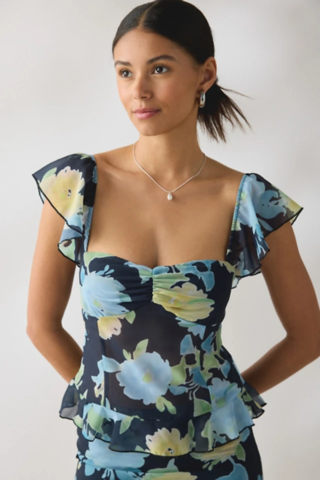 Boho Floral Embroidery Cap-Sleeve Corset Top
