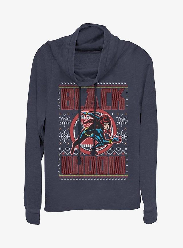 Marvel Black Widow Christmas Pattern Cowlneck Long-Sleeve Womens Top