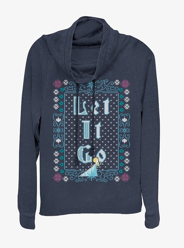 Disney Frozen Let It Go Ugly Sweater Cowl Neck Long-Sleeve Girls Top