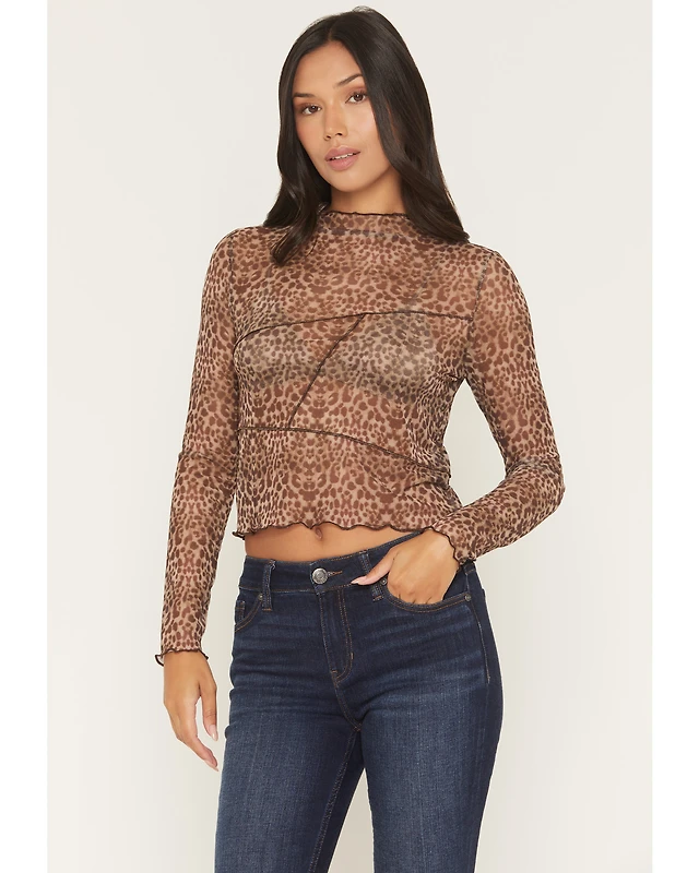 Panhandle Women's Boot Barn Exclusive Leo Leopard Print Long Sleeve Mesh Top