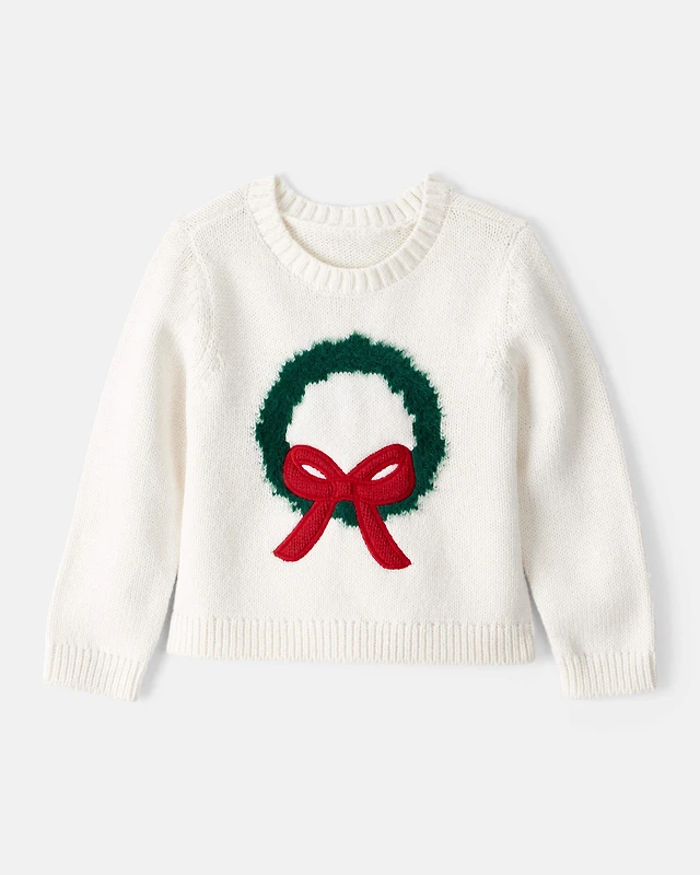 Toddler Girl Christmas Wreath Long-Sleeve Sweater - White