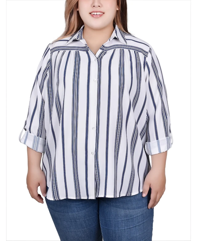 Ny Collection Women's Long Sleeve Striped Satin Blouse