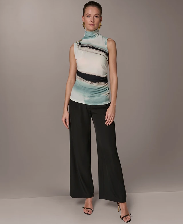 Liverpool Los Angeles Women's Crewneck Sleeveless Pleated Knit Top