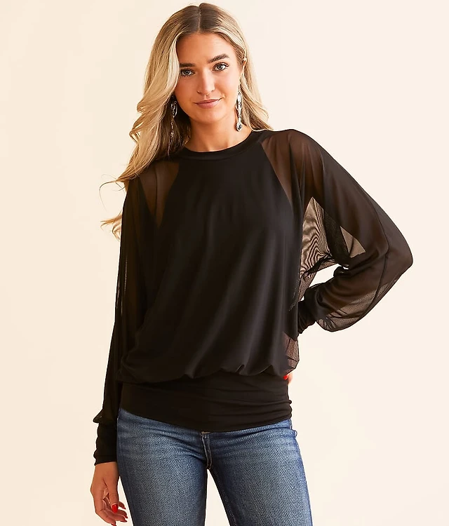 Dkny Women's Sequined Layered Short Sleeves Mesh Top