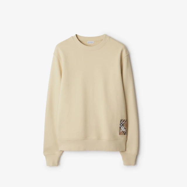 Check Label Cotton Sweatshirt in Nutmeg - Men | Burberry® Official