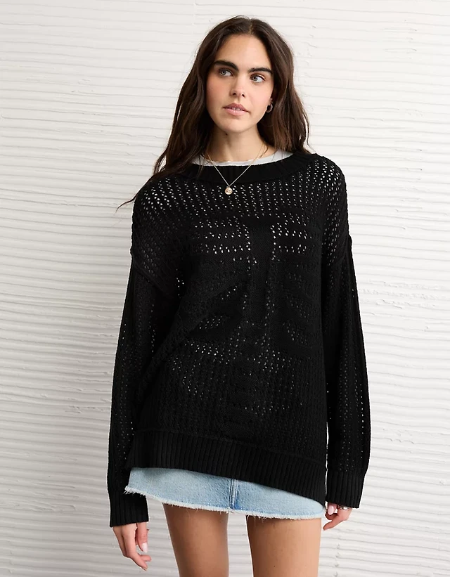 AE Flutter Sleeve Eyelet Babydoll Blouse