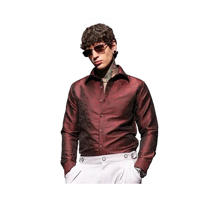 Campus Sutra Men's Crimson Red Flowing Vines Shirt